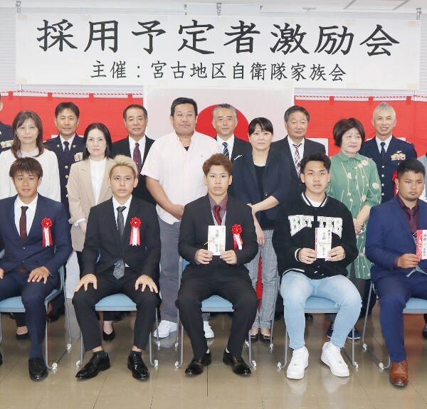 宮古地区自衛隊家族会(池村英三会長)は12日、平良地方合同庁舎で、2022年度の自衛隊採用予定者激励会を開いた。