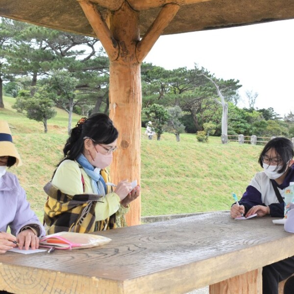 宮古島ジュニア俳句育成会(池田俊男会長)の2023春の俳句吟行会が26日、カママ嶺公園で俳句誌「円虹」主宰の山田佳乃さんを選者に招いて3年ぶりに行われた。