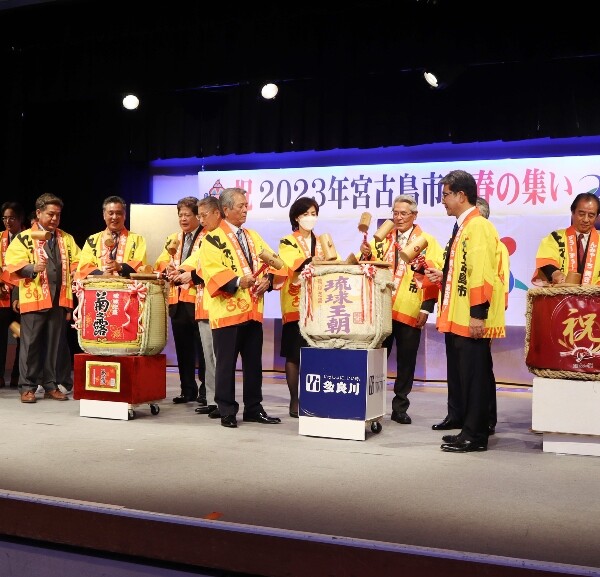 3年ぶりとなる宮古島市の2023年新春の集いが4日、市内ホテルで開かれた。官公庁や各種団体、民間企業など各界の代表ら200人が交流を深め、宮古島市のさらなる躍進を祈念した。座喜味一幸市長は「コロナを侮ることなく、行動制限のない年にしていきたい」と述べるとともに、4年ぶりに開催予定の全日本トライアスロン宮古島大会などを通した経済振興や2次交通不足の解消といった課題解決に取り組む考えを示した。