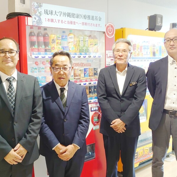 琉球大学(西田睦学長)が「沖縄健康医療推進基金」の一環で取り組んでいる寄付型自動販売機がこのほど、市役所と宮古病院に設置された。