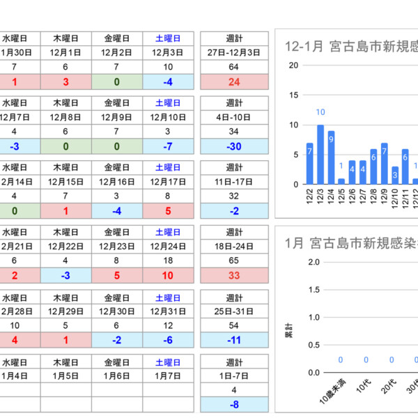 沖縄県は2日、宮古島市の新型コロナ感染者は0人だったと発表。県立病院入院療養者は6人(軽症6人)。県での直近1週間の人口10万...