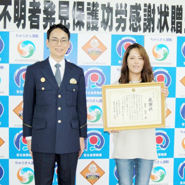 新里彩夏さんに感謝状 行方不明者発見保護で