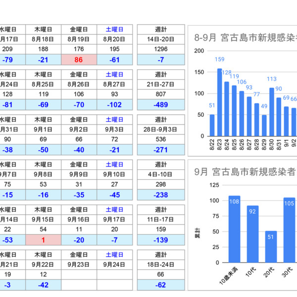 沖縄県は22日、宮古島市在住の新型コロナ感染者12人を確認したと発表。入院療養者は3人(中等症2人、軽症1人)。市での直近1週...