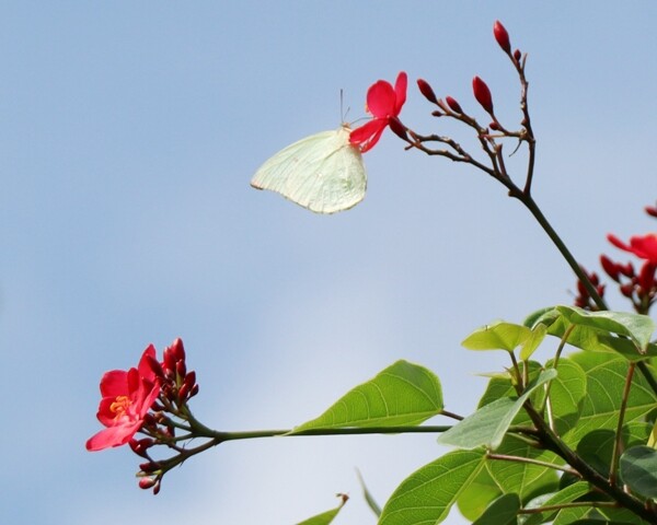 ウスキシロチョウ秋晴れの下、舞う 市熱帯植物園