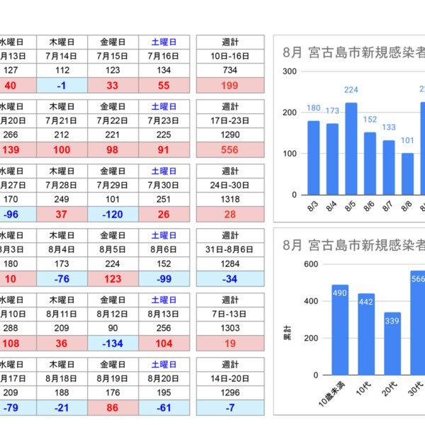 沖縄県は20日、宮古島市在住の新型コロナ感染者は195人と発表。入院療養者は12人(中等症7人、軽症5人)。市での直近1週間の...