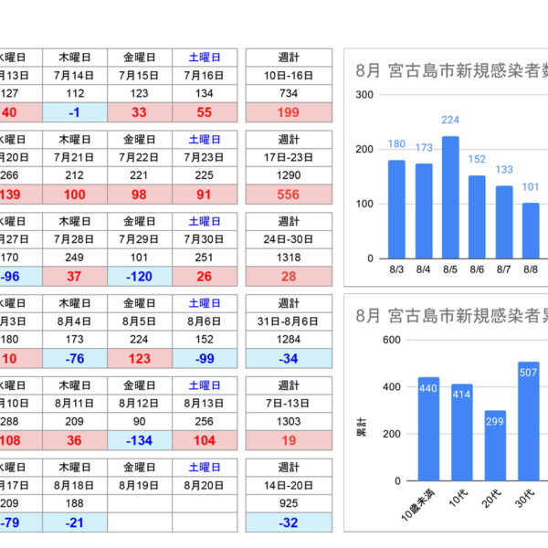 沖縄県は18日、宮古島市在住の新型コロナ感染者は188人と発表。入院療養者は11人(中等症5人、軽症6人)。市での直近1週間の...