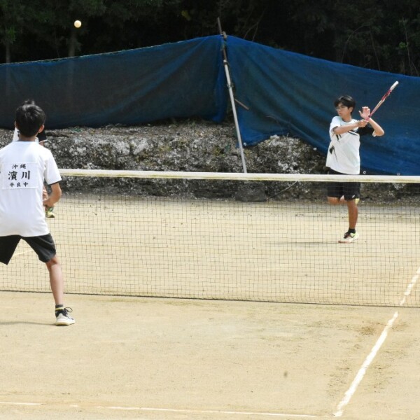 宮古ソフトテニス連盟主催の「第43回連盟杯中学生選手権大会」、「2025年連盟杯小学生選手権大会」が17日にパニパニテニスコートなどで行われ、中学生らがダブルス戦で熱戦を展開した。