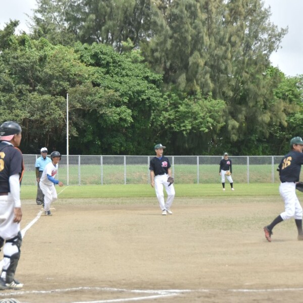 第9回宮古新報杯第77回夏季軟式野球大会六日目が雨模様の中、11日に一般C、成年、実年の各級3試合を実施した。