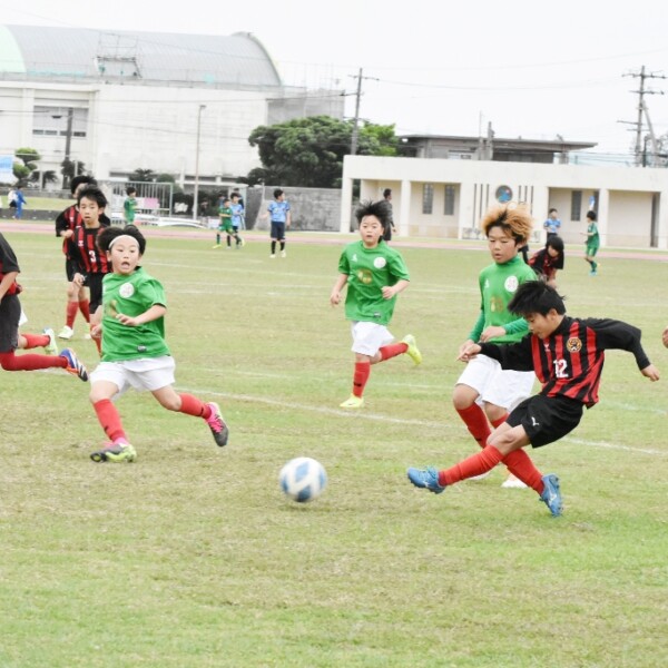 市制20周年記念・宮古サッカー協会50周年記念「2025やびじ交流サッカー宮古島大会」U12の試合が29日、陸上競技場と前福多目的運動場で開幕した。