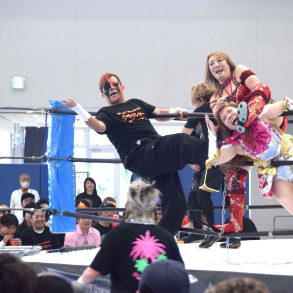 女子プロレス団体「OZアカデミー」の宮古島大会が18日、JTAドーム宮古島で開催された。 女子プロレス団体「OZアカデミー」の宮古島大会が18日、JTAドーム宮古島で開催された。同団体設立30周年、看板レスラー尾崎魔弓選手の40周年を記念した今大会には、地元出身のクラッシャー前泊選手も特別参戦。会場には満員となる999人の観衆が詰めかけた