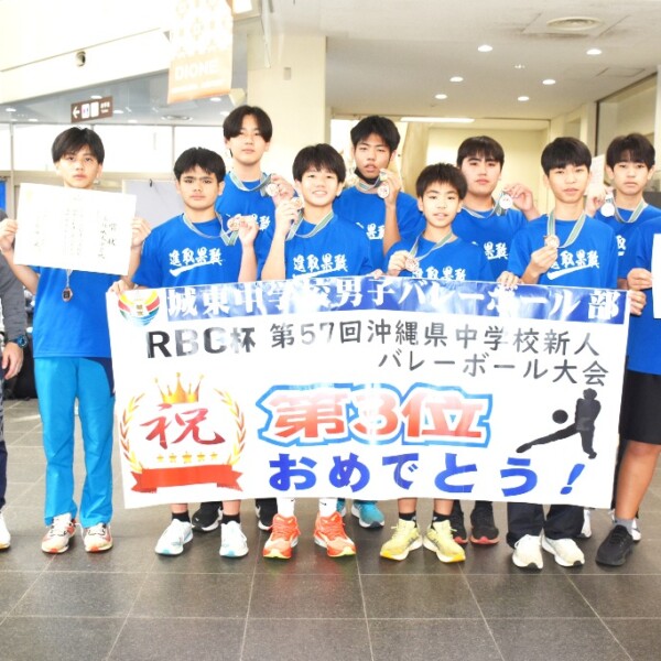 RBC杯「第57回沖縄県中学校新人バレーボール大会」に出場した城東中学校男子チームが3位に入った。
