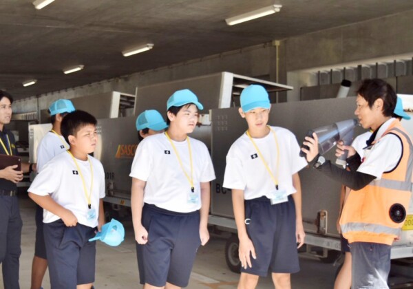 下地島空港で3日、ターミナル利用客数200万人到達イベントの一環として、伊良部島中学校1年生を対象にした職場講話および空港見学が行われた。