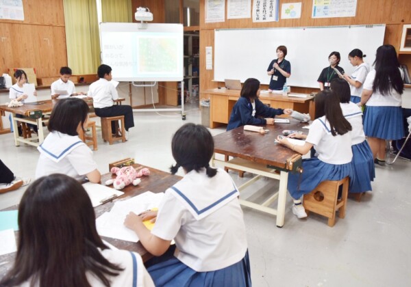 宮古工業高校生活情報科の1年生14人が1日、同校実習室で「宮古の織物学習会」に取り組んだ。