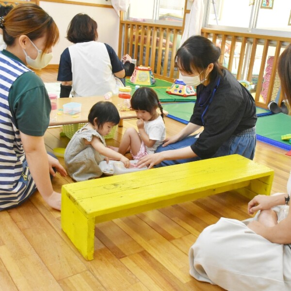 東保育所(横田千春所長)は2日、通っていない子どもとその保護者らを対象に保育所を開放する取り組みを行った。
