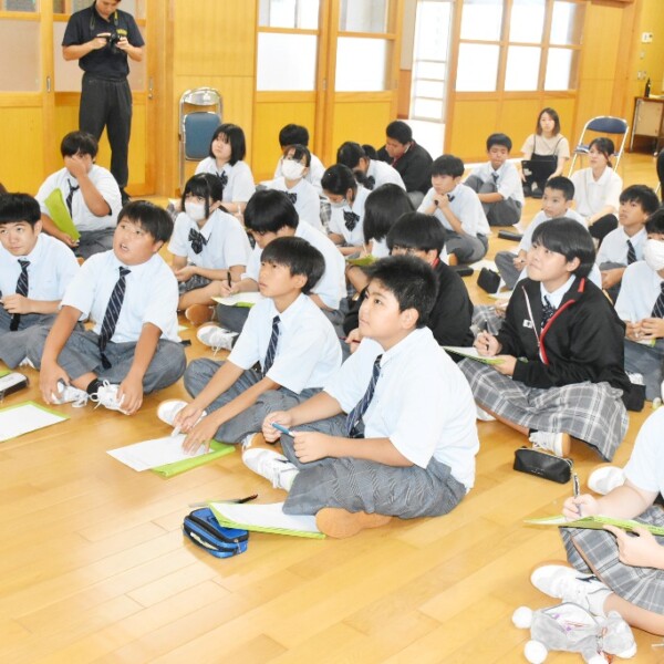伊良部島中学校は10日、環境カウンセラーの吉浜崇浩さん(蟹蔵代表)を講師に招いた出前環境保全講話を行った。