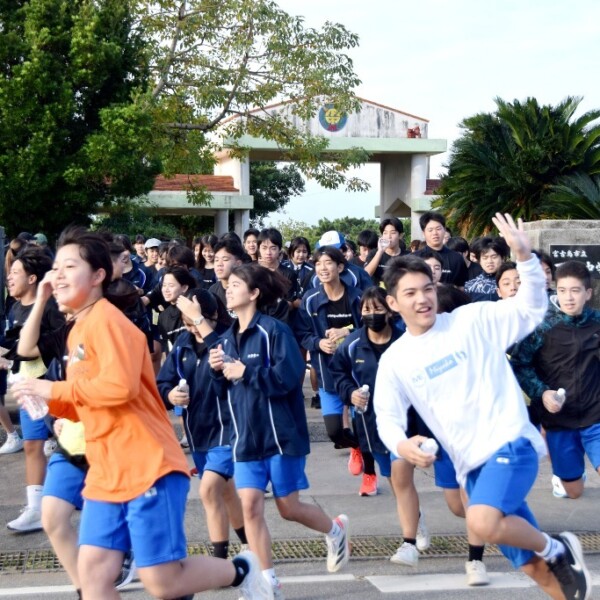 下地中学校は11月30日、恒例の第46回強歩大会を実施し、生徒が2コースに分かれて下地の大地を力強く駆け抜けた。