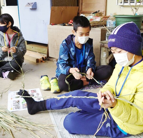 宮古島市総合博物館(友利浩幸館長)の2022年度子ども博物館第5回講座が29日午前、同館で開催され、児童たちが昔から生活の中で民具として使用されてきた縄の役割などを学ぶとともに、ススキの葉を使って手の平でよじる「縄ない」の作業に熱心な表情で取り組んだ。