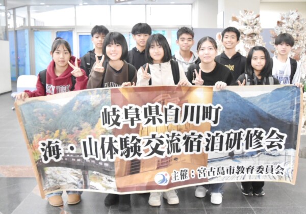 2025年度「海・山体験交流宿泊研修会(冬期)」の出発式が16日、宮古空港で行われ、下地小学校6年生10人が岐阜県白川町へ向けて旅立った。