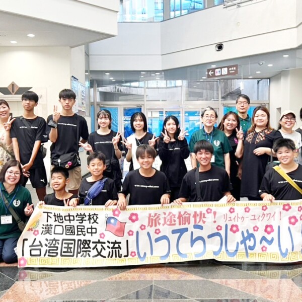 下地中学校(﨑山用彰校長)の台湾交流事業団が14日朝、宮古空港で出発式を行い、保護者や教職員、市教育委員会関係者らが見送った。