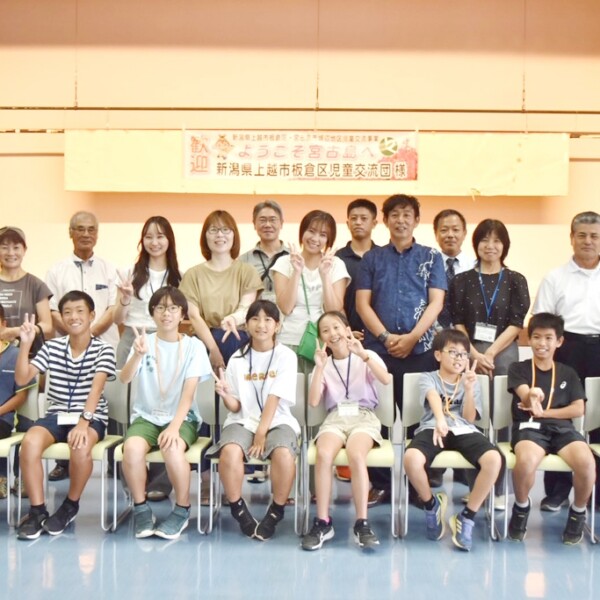 新潟県上越市板倉区の小学生4人が来島し、城辺地域の小学生4人とともに3泊4日の交流合宿をスタートさせた。