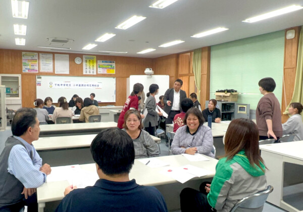 鏡原中学校は30日、今年3月に第62回沖縄タイムス教育賞正賞を受賞した宮古工業高校の㓛刀弘之教頭と生活情報科生徒を同校に迎え、平和集会および平和旬間を実施した。