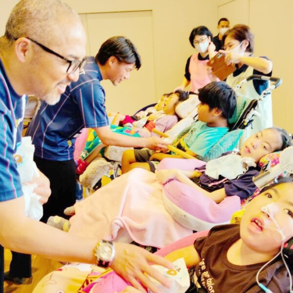 奥大介Presents宮古島ドリームマッチ実行委員会は12日、同委員会が実施している「宮古島スマイルプロジェクトの一環として、市内の複合型児童福祉施設みやくるるを訪問した。