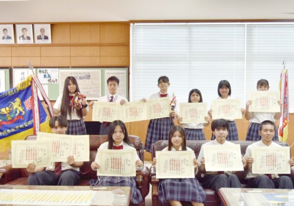 宮古島市教育委員会(大城裕子教育長)は10日夕、市役所で8月に実施するマウイ島青少年交流プログラムに参加する中学生11人、高校生3人の計14人に対して補助金交付式を行った。