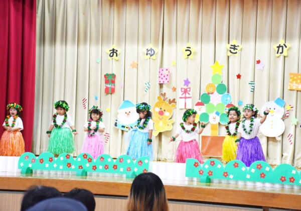 花園保育所(金谷福代所長)の子どもたちが2日、手作りした神輿(みこし)を担いで同所周辺道路を「わっしょい!」と元気いっぱいに練り歩いた。