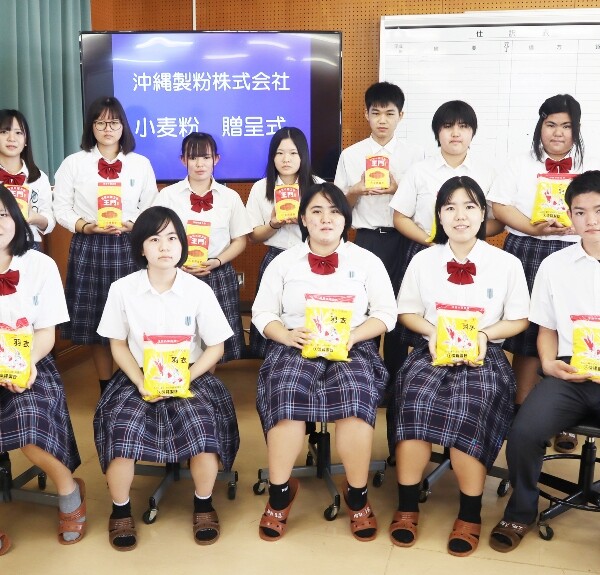 沖縄製粉(那覇市、竹内一郎代表)は20日、宮古総合実業高校食と環境科フードクリエイトコースに、小麦粉50㌔を贈呈。