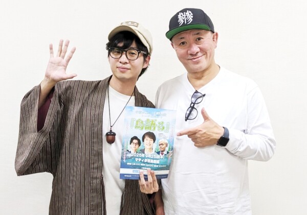 25日にマティダ市民劇場で開かれるトークイベント「島語る」を前に、出演する宮古島出身の芸人で放送作家の若林凌駕さんと俳優・芸人で活躍する三又又三さんが23日、宮古新報社を訪れた。