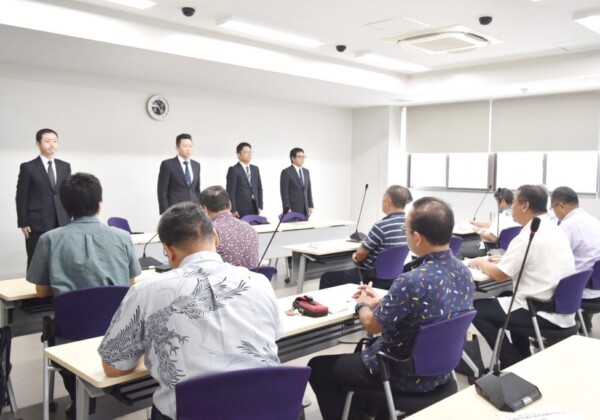 第十一管区海上保安本部が宮古島北西約40㌔の海上で実施した武器海上発射試験中、「地域航行警報」を誤って解除した事案について、宮古島市議会与党議員団は11日、市役所で宮古島海上保安部(丹野博信部長)から経緯の説明を受けた。