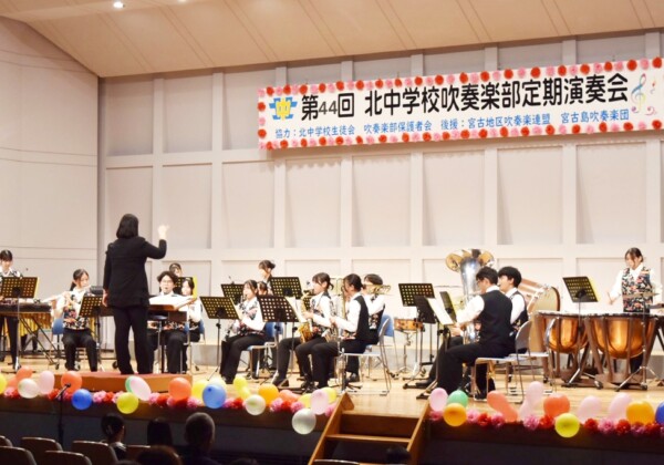 北中学校吹奏楽部の第44回定期演奏会が14日、マティダ市民劇場で開かれ、部員たちが一年間の練習の成果を披露した。