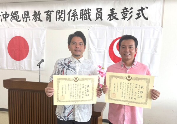 県教育委員会は5日、那覇市県庁で「2025年度優秀教職員および教育功労者表彰式」を開催し、県内の小中学校から計18人を表彰した。