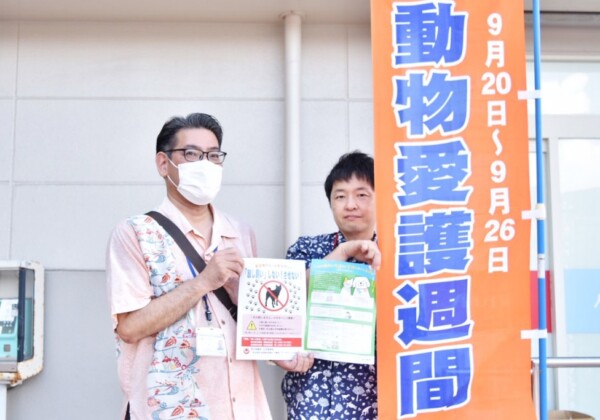 動物愛護週間(9月20~26日)に合わせた街頭キャンペーンが26日、市内スーパーで行われ、市民に命の尊さと適正な飼養を呼び掛けた。