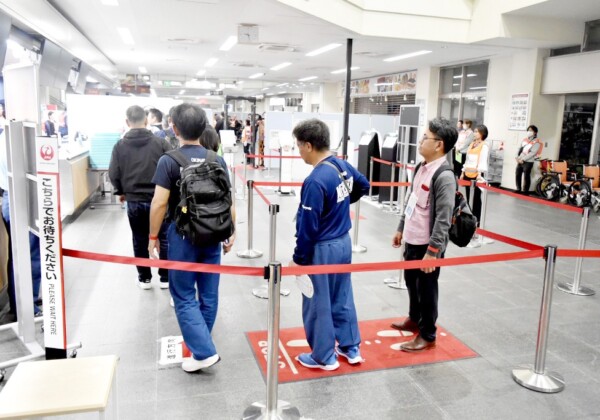 県と宮古島市、内閣官房、消防庁は18日、宮古空港で国民保護に係る実地確認を行い、避難住民を航空機で島外に移送する際の動線や所要時間を検証した。