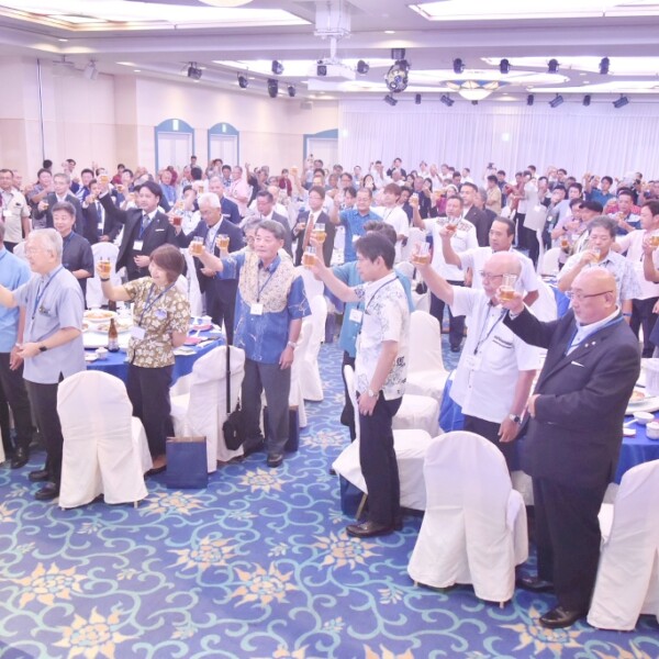 宮古島市の市制施行20周年を祝う記念交流会が3日夜、市内下里のホテルで盛大に開かれた。