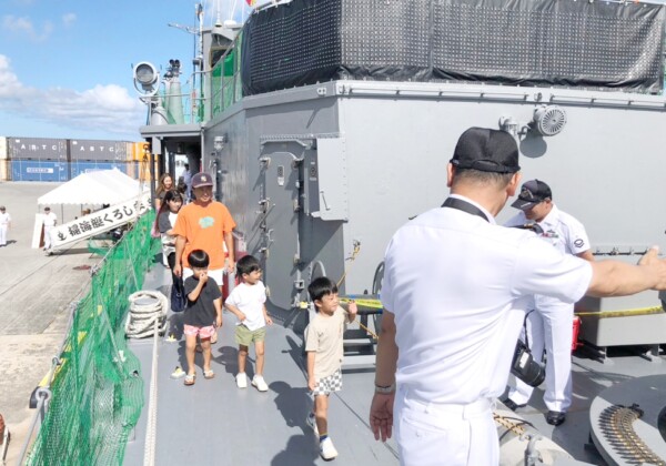 平良港に接岸中の海上自衛隊の掃海艇「くろしま」の一般公開が4日、平良港第2ふ頭で行われ、多くの親子連れが訪れた。