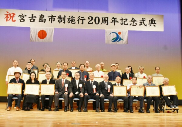 宮古島市(嘉数登市長)の市制施行20周年記念式典では市発展に尽力、貢献したとして一般・功労・感謝状表彰が行われ、個人31人と5団体が受賞した。