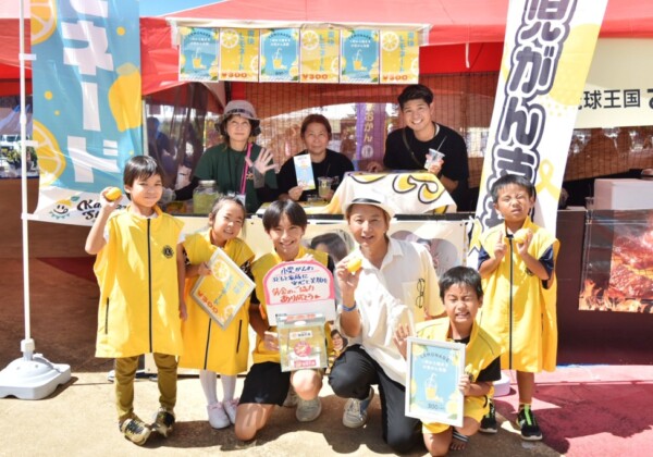 宮古島市制施行20周年市民フェスティバルの会場となったJTAドーム宮古島で4日、小児がん患者と家族を支援する「顔晴(かおは)れ会」と宮古ライオンズクラブとレオクラブによるチャリティーレモネードスタンドが開かれた。