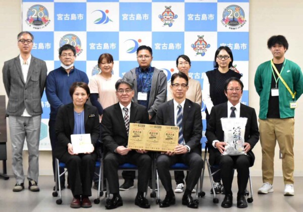 トーホーは21日、市役所で宮古島市を通じ、こども食堂など市内13団体へレトルト食品や米などを寄贈した。奥野邦治代表取締役社長も来島し、寄贈後は、市内の子どもの貧困問題や子ども食堂の現状、今後の支援の在り方などについて意見交換が行われた。
