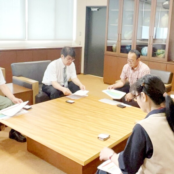 宮古病院の川満博昭院長らが18日、市役所を訪れ「持続可能な宮古病院に向けて」と題した資料を提出し、医療体制強化に向け市との連携を求めた。