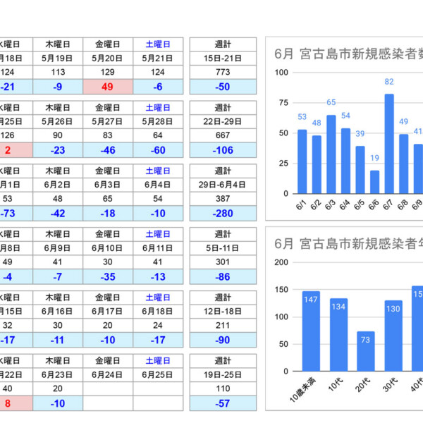 沖縄県は21日、宮古島市在住者で新型コロナ感染者26人を確認したと発表。入院療養者は3人(軽症3人)。市での直近1週間の人口1...