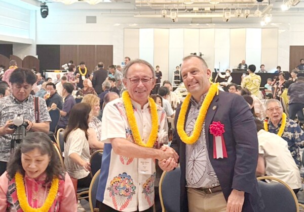 【那覇支局】沖縄県とハワイ州の姉妹提携40周年および移民125周年を記念する式典と祝賀会が11日、那覇市内のホテルで行われた。