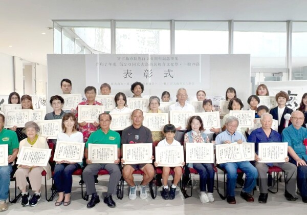 第20回宮古島市民総合文化祭(市教育委員会、市文化協会主催)の一般の部表彰式が12日、未来創造センター内中央公民館の入り口(ホワイエ)で行われた。