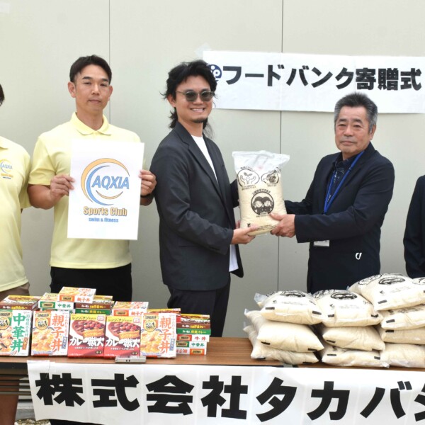 アクシアスポーツクラブを運営するタカバシラ(岡村憲朋・瑞慶覧裕也代表)が19日、市社会福祉協議会(野原勝会長)の「フードバンクんまんま」にレトルト食品を贈った。昨年に続いての寄付
