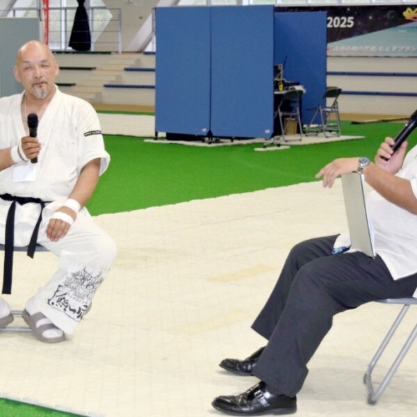 スカイネット社取締役の立野奨さんとプロレスラーの鬼熊千春選手は15日の占いスピリチュアル万博2025in宮古島JTA導夢で「不登校支援プロジェクト」についての会見を開いた。