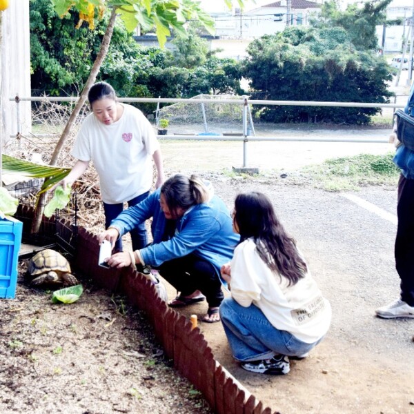 市平良東仲宗根の若松食堂で、年末にかけて来店客の注目を集めたのが、裏庭に暮らすリクガメの「そら君」だ。