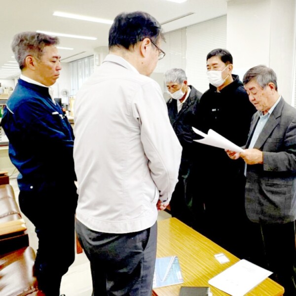 佐良浜振興会および宮古島地区交通安全協会佐良浜支部は6日、宮古土木事務所を訪れ、上原正也所長に下地島空港佐良浜線道路整備を促進する要請書を提出した。