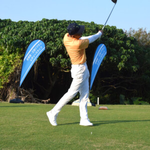 20日に開催される全日本トライアスロン宮古島大会の成功を願い、オキジム高江洲慎也宮古支店長は11日、市役所に嘉数登市長を訪ね、寄付金を贈呈した。