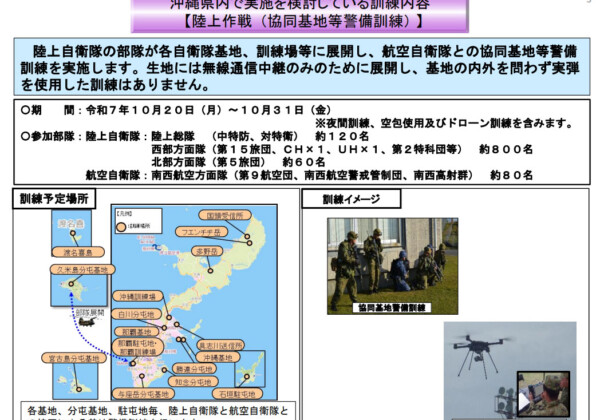 宮古島市は沖縄防衛局から提供を受けた「2025年度自衛隊統合演習(実動演習)」に関する情報を市公式ホームページで公開している。
